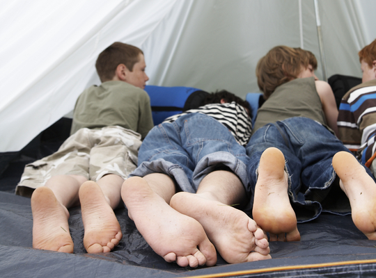 Kinderen vast onder tenten
